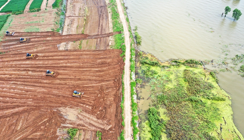 通过防汛抢险圩堤加固十日会战方案的实施,可保四场东大圩堤在水位16.20米时安全度汛。(李龙)