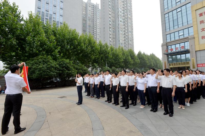 当天的活动分三个阶段进行,上午8时许,在集团公司一楼广场,举行升国旗唱国歌仪式。在庄严的国歌声中,五星红旗缓缓升起。升旗仪式结束后,在余向东领誓下,在场150余名党员重温入党誓词,表达为共产主义事业奋斗终生、做担当民族复兴大任时代新人的决心。