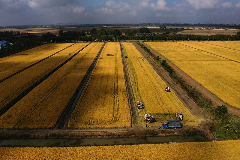 潘村湖水稻收获过半