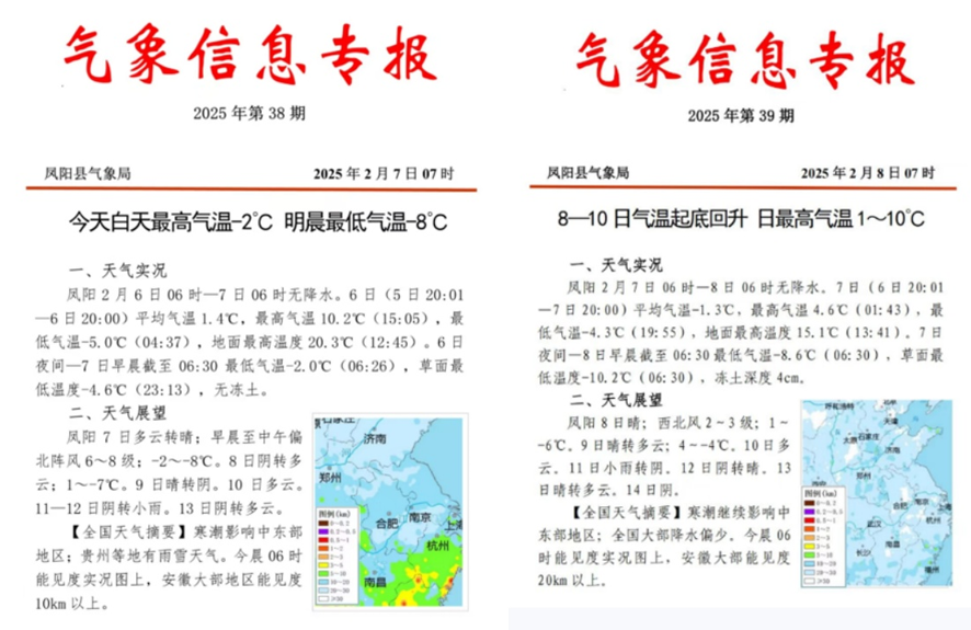 2月6日,凤阳县气象局向辖区企业转发了省气象局发布的寒潮蓝色预警,预计6日夜里至7日,全县平均气温将下降7-9℃。在此期间,方邱湖农场公司与县气象部门紧密联系,及时掌握天气预报,科学应对初春寒潮,联动防灾减灾,最大限度将在田小麦的不利影响降到最低。