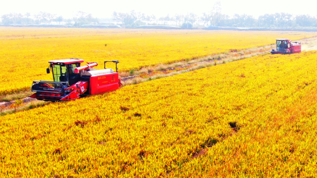 淮南农场水稻收割作业(沈芳 摄)