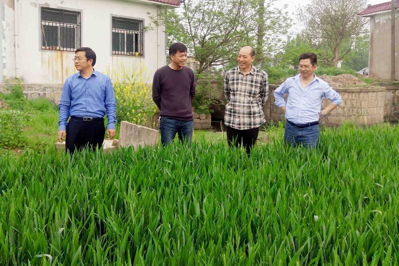 4月14日,江苏淮安农科院著名小麦育种专家顾正中研究员到寿西湖农场指导小麦生产,场领导崔怀龙等陪同。