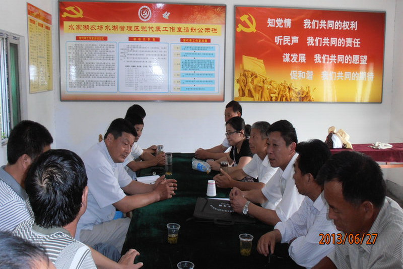 今年以来,为探索完善党代会闭会期间发挥党代表作用的有效途径,推进党代表履职制度化和常态化,水家湖农场党委围绕知党情、听民声、谋发展、促和谐主题,充实和加强基层党组织建设,在水湖、马厂两个管理区设立了2个党代表工作室示范点,共确定基层联络员59名。