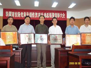 6月30日上午,华阳河农场党委召开保持共产党员先 进性教育活动总结表彰大会。场党委成员唐邦水、 胡德庆、汪登松、祁震亮、唐发长,机关全体党 员,各农业场、场直各单位主要领导及党员代表60 多人参加了大会。党委副书记、工会主席汪登松主 持会议。+党委书记、场长唐邦水代表场党委作了 《以保持共产党员先进性为动力,进一步搞好我场 的党建工作》的总结报告;副场长胡德庆宣布了受 集团公司党委和场党委表彰的先进党组织、优秀共 产党员、优秀党务工作者、优秀职工;场领导为获 奖人员颁发了奖状和荣誉证书。+ 唐邦水同志在总 结报告中,全面总结回顾了先进性教育活动的各项 工作。他说:华阳河农场从2月初开始开展的保持共 产党员先进性教育活动,经过全场各级党组织和广 大党员的共同努力,做到了学习动员广泛深入,分 析评议取得实效,整改提高群众满意。在场内外产 生良好的影响,基本达到了党中央提出的“提高党 员素质,加强基层组织,服务人民群众,促进各项 工作”的目标要求。在庆祝中国共产党诞辰84周年 之际,场党委将对先进性教育活动中涌现的先进党 组织,优秀党务工作者,优秀党员及优秀职工进行 表彰。希望全场各级党组织和广大党员向受表彰的 先进单位和先进个人学习。党的先进性建设是马克 思主义政党自身建设的根本任务和永恒的课题,全 场各级党组织要以这次先进性教育活动为动力,建 立起新形势下“党员受教育,永葆先进性”的长效 机制。1、建立健全党员长期受教育的学习机制。坚 持“三会一课”,中心组理论学习,干部培训,党 员电化教育制度,做到学习时间、内容、人员、效 果四落实。2、建立健全纯洁党员队伍的管理机制, 坚持用《党章》和《党内监督条例》等党内法规严 格规范党员的行为。3、建立健全党员密切联系群众 的服务机制,进一步深入开展“大力发展经济,关 心职工生活,尽最大努力解决职工最为关心的热 点、难点问题”的主题活动,畅通党情民意的绿色 通道,加强民主管理。4、建立健全加强基层党组织 建设的工作机制。5、建立健全抓好新形势下党建工 作的责任机制。+汪登松副书记对会议进行了总结, 并要求大家要认真学习,贯彻落实会议精神,努力 开创我场党建工作的新局面。(华阳河农场办公室)